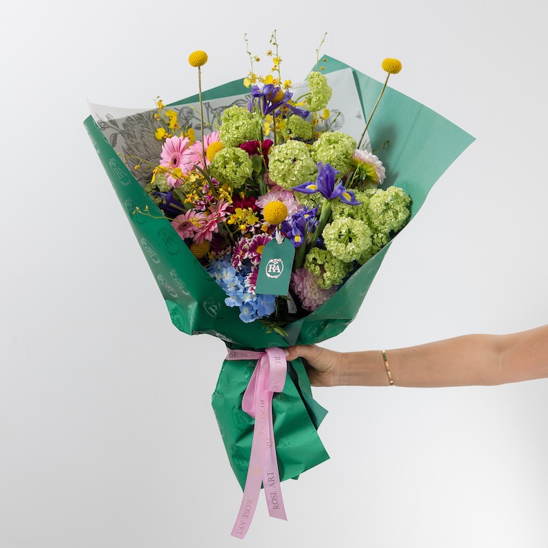 Собранный вручную и оформленный в нашем фирменном стиле, этот букет станет идеальным выбором для торжеств, поздравлений или просто для того, чтобы произвести незабываемое впечатление. Каждый цветок отобран за свою яркую красоту и гарантированную свежесть.